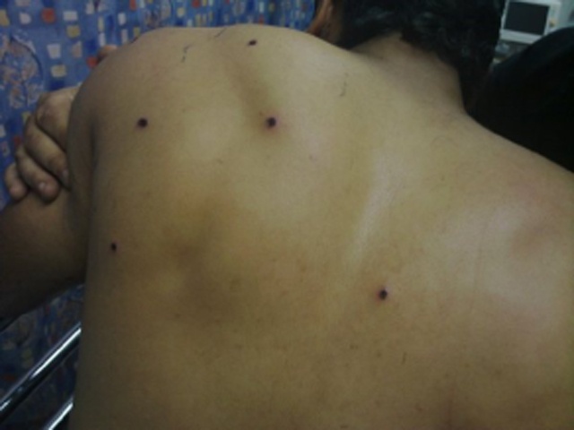 وقال والد المصاب، وهو علي حسن السهلاوي: إن ابنه «يرقد حاليا في مستشفى العسكري، إلا أن وجوده وعدمه واحد، لأن الطبيب المعالج قال له ليس لك علاج، ولا يمكننا استخراج الشظيات الموجودة في جسمه، إذ مازالت 68 شظية مستقرة في مختلف أنحاء جسمه، ولم تستخرج منه إلا شظيتان فقط (...)».